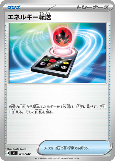 自分の山札から基本エネルギーを1枚選び、相手に見せて、手札に加える。そして山札を切る。