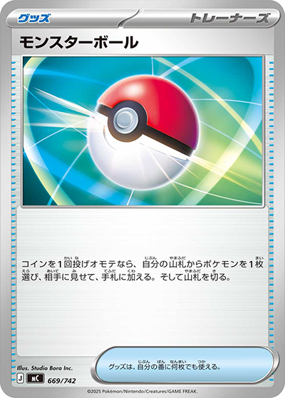 コインを1回投げオモテなら、自分の山札からポケモンを1枚選び、相手に見せて、手札に加える。そして山札を切る。