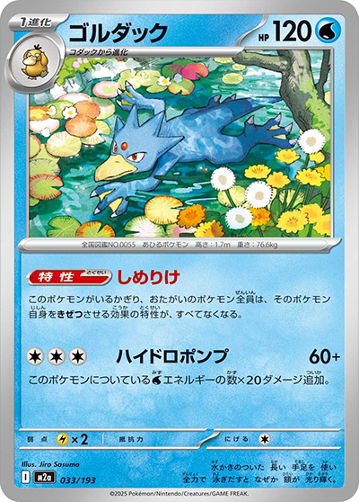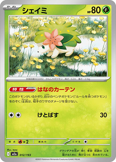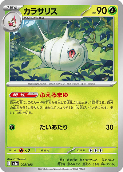 自分の番に1回使える。自分の手札から「基本 基本草エネルギー エネルギー」を1枚選び、このポケモンにつける。その後、自分の山札を1枚引く。