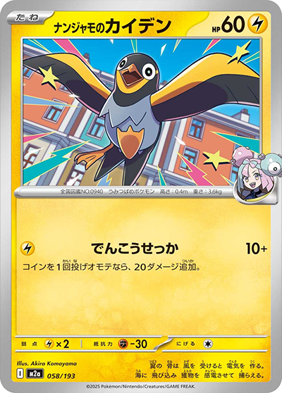 のぞむなら、このポケモンについている かみなり エネルギーを2個トラッシュし、相手のバトルポケモンをマヒにする。