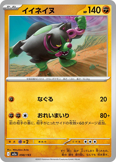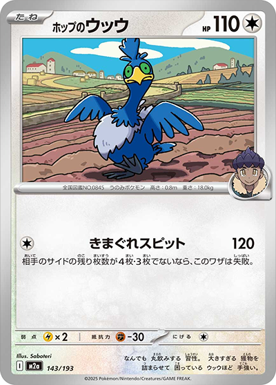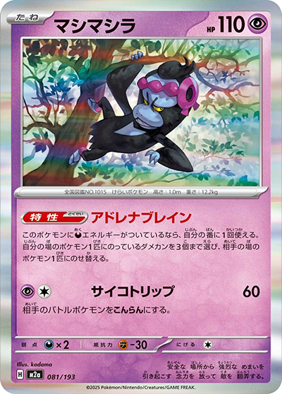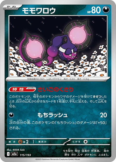 自分の番に、このカードを手札から出して進化させたとき、1回使える。相手のポケモン2匹に、それぞれダメカンを2個のせる。