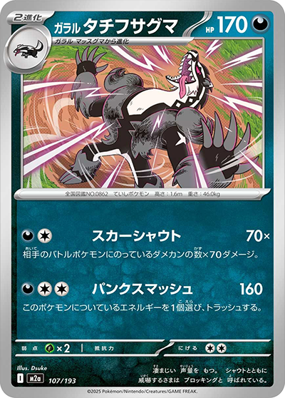 相手がすでにとったサイドの枚数×50ダメージ追加。このポケモンについているエネルギーを1個選び、トラッシュする。