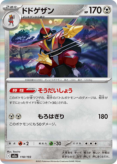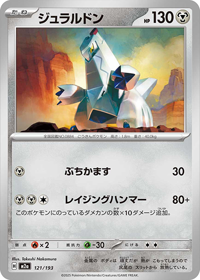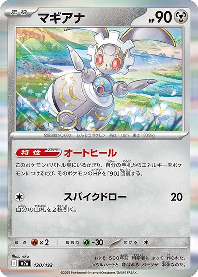 自分の番に、このカードを手札から出して進化させたとき、1回使える。自分のトラッシュから「基本 はがね エネルギー」を2枚まで選び、自分の はがね ポケモンに好きなようにつける。