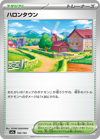 自分の番に、このポケモンがベンチからバトル場に出たとき、1回使える。自分の山札から「基本 くさ エネルギー」を3枚まで選び、このポケモンにつける。そして山札を切る。