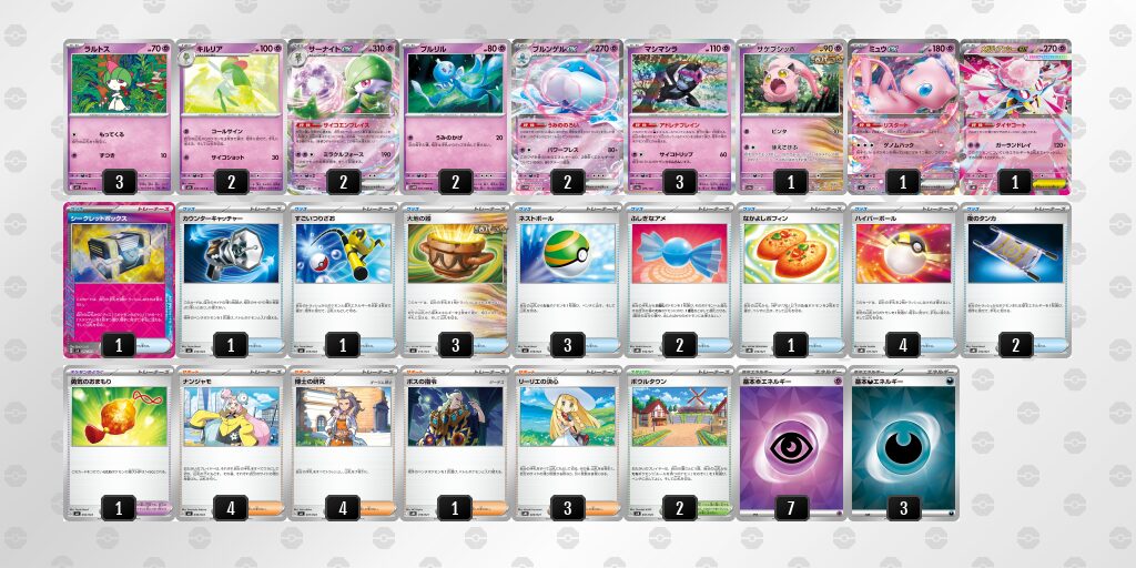 特性「サイコエンブレイス」は、トラッシュから基本 基本超エネルギー エネルギーを自分の 基本超エネルギー ポケモンに好きなだけエネルギー加速をすることができるとても優秀な特性となっています。(エネルギーの枚数×ダメカン2個のります)