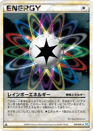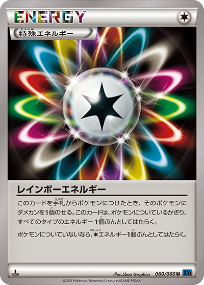 このカードは、ポケモンについているかぎり、すべてのタイプのエネルギー1個ぶんとしてはたらき、このカードをつけているポケモンは、相手のポケモンから特性の効果を受けない。