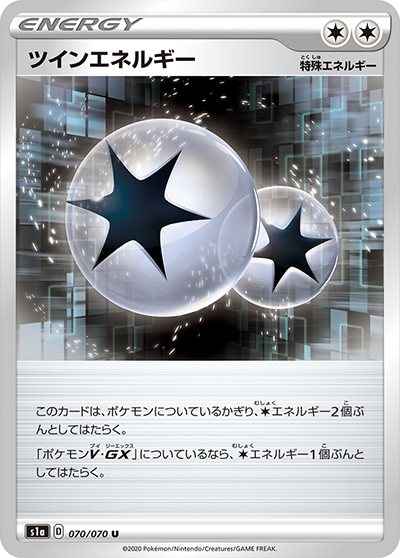 このカードをつけているポケモンが、相手の「ポケモンV」から受けるワザのダメージは「-30」される。この効果は、「Vガードエネルギー」が何枚ついていても、重ならない。