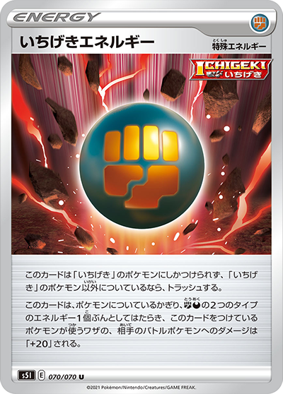 このカードは「いちげき」のポケモンにしかつけられず、「いちげき」のポケモン以外についているなら、トラッシュする。